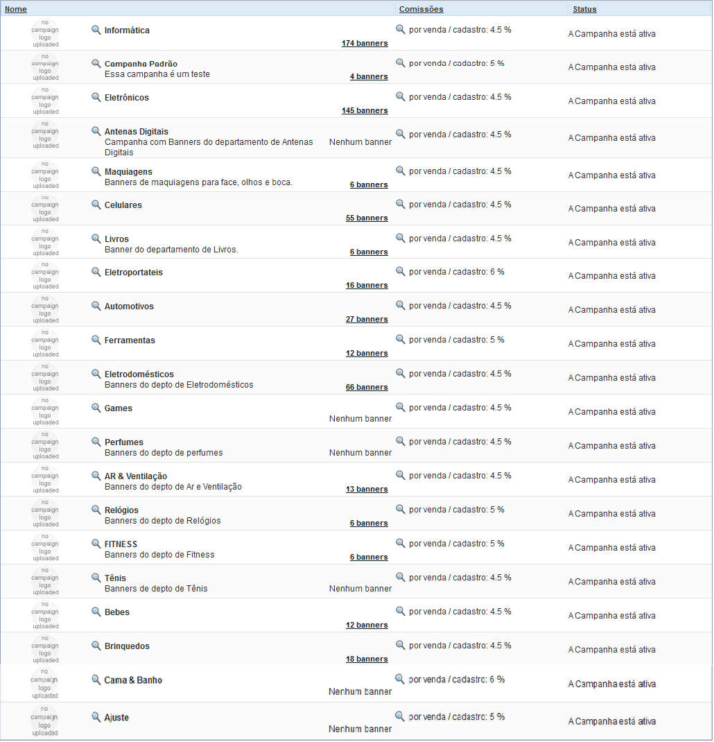 Observe que cada produto tem um valor de comissão específico; às vezes os valores das comissões podem se repetir, mas há uma variação. Isso é bom, pois você poderá ganhar mais, dependendo do produto que vender.